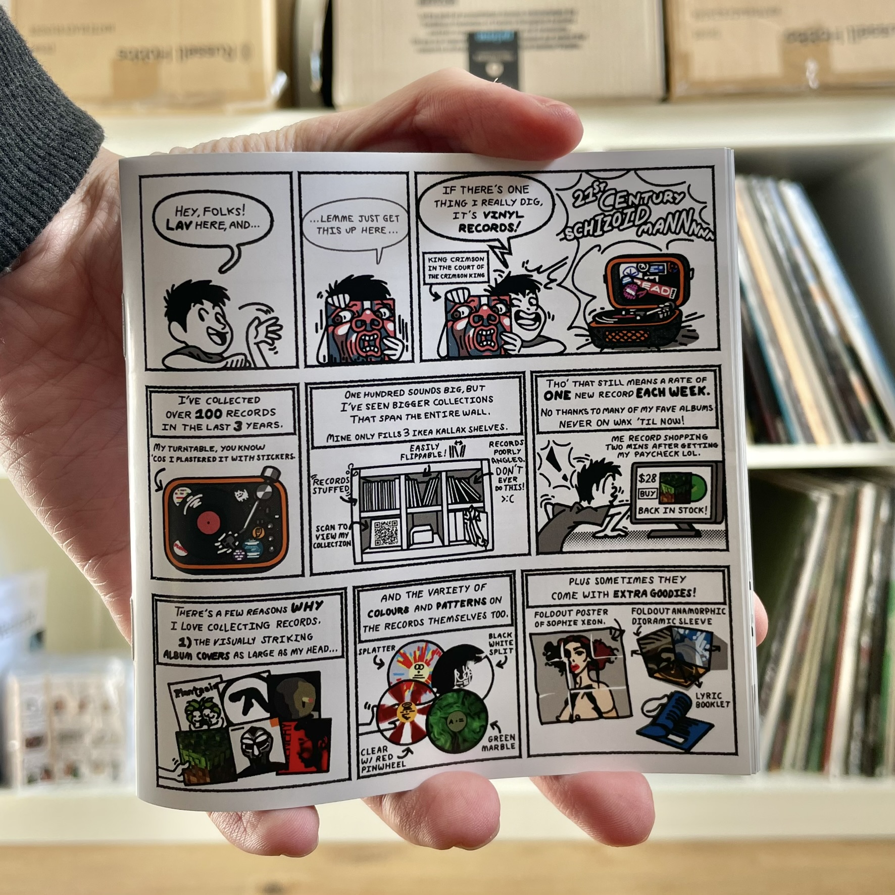 These are my 26 doodles of the first LPs I owned compiled into a glossy CD-sized booklet, each with: