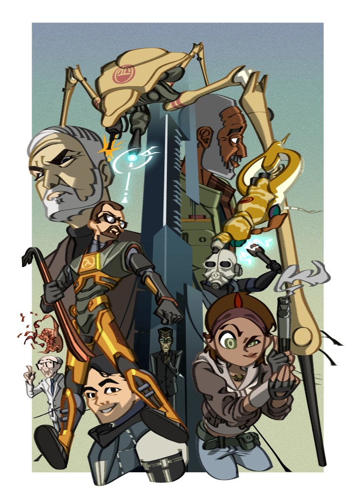 fan illustrations of various video games produced by Valve Corporation including Team Fortress 2 and Half-Life 2 printed and made for sale at fan conventions, artists’ alleys and my personal online store.