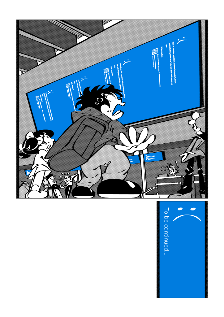 An original adventure manga based on the real-life 2024 worldwide IT outage inspired by 80s educational comics and classic manga.